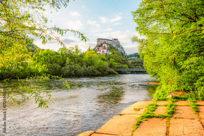 Orava castle or oravsky hrad in Oravsky Podzamok in Slovakia. Medieval castleon high cliff by the Orava river.