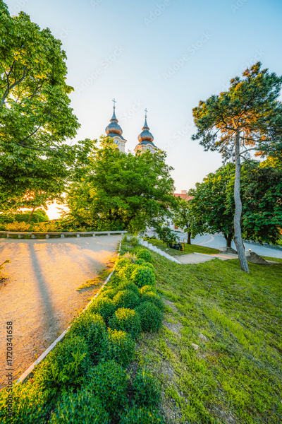 Tihany in Hungary. Benedictine Monastery of Tihany Abbey near Lake Balaton.