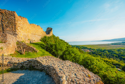 Sunset over the castle Szigliget, Hungary near Balaton lake