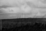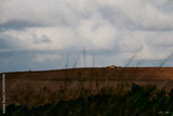 Large red potash tailings pile in Saskatchewan, Canada, with visible erosion line and a vehicle on top, symbolizing mining waste and environmental impact under cloudy sky.
