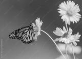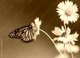 Migrating Monarch butterfly (Danaus plexippus) feeding on Golden Crownbeard flowers in Texas autumn.
