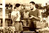 Family quarrel between a husband and wife in a grocery supermarket