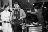 European woman communicates with a car service mechanic about the car repair process, finds out the cost and recommendations. Car service client consults with a master about the condition of the