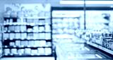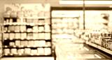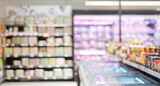 Blurred grocery store supermarket background with bokeh light, Blur fresh food at product shelves in market backdrop, business banner, wallpaper