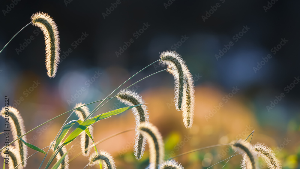 Back lit Fox tail grass in autumn time also known as autumn grass.
