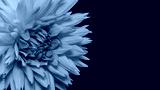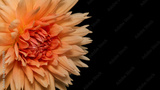 Close up view of red and orange Dahlia flower isolated on black background with copy space.