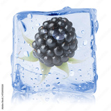 Fresh blackberry in ice cube isolated on white