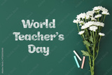 Happy Teacher's Day greeting card with flowers and text on green chalkboard