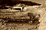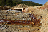 Toxic gold mining residual waters from gold mine flowing and polluting environment