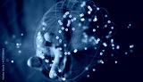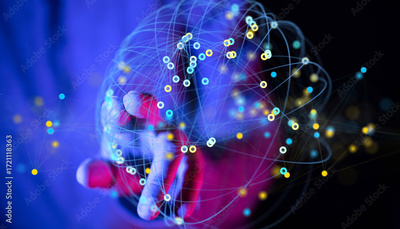 Abstract image of a hand holding a digital sphere representing global network connections and data flow.
