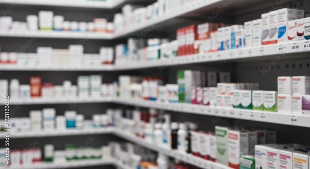 Pharmacy shelves with medications
