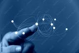 Abstract image of fingertip interacting with a digital network. Perfect for tech, connection, and innovation concepts.