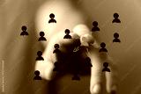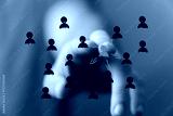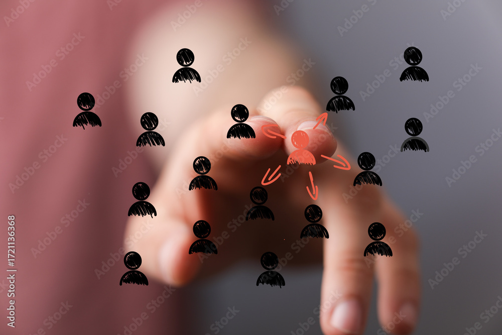 Hand pointing at a person icon representing market segmentation and target audience selection.