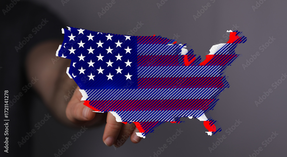 Patriotic image of USA map designed with American flag. Ideal for independence day, election, or national pride.