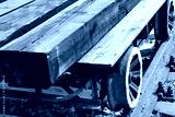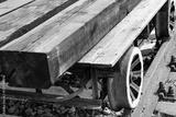 The image shows a truck on rails used to transport timber