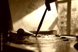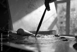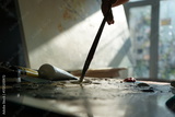 Painting on Canvas in Studio