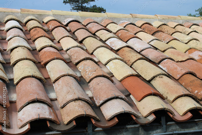 Toiture, couverture en tuiles anciennes canal romane, crochetage de tuile