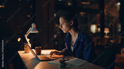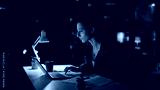 Frustrated freelancer worried project mistake looking laptop at night closeup.