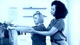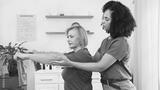 Physiotherapist Assists Senior Woman With Arm Exercise Using Resistance Band During Therapy Session