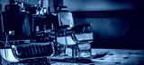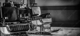 Vintage barber chair. Professional hairstylist in barbershop interior. Black and white