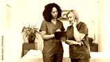 Physiotherapists Review Treatment Plan With Tablet In Clinic Setting During Consultation