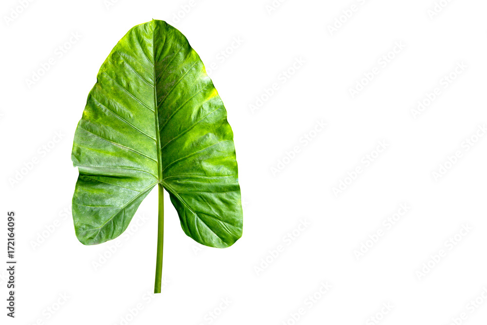 Giant Upright Elephant Ear or One big green tropical leaf from jungle isolated on white background. Copy space