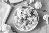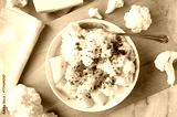 Cauliflower with a delicious gouda cheese sauce and boiled potatoes on a plate. Budget friendlich and easy to cook meal