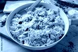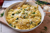 Fried noodles with zucchini, eggs and parmesan cheese fresh and homemade cooked