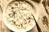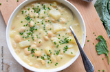 Vegan potato soup with white beans on a soup plate fresh and homemade cooked