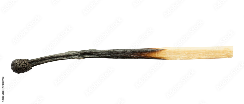 charred household wooden match isolated