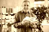 In sales area of drugstore, mature man customer purchased large number of different drugs, vitamins. Insurance coverage for patients, prolonging period of vital activity.