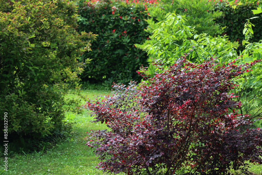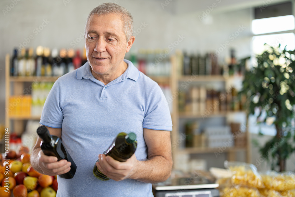 Selective young woman scanning barcode on pantaloons in clothing shop with large assortment