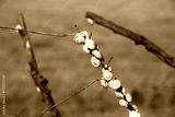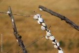 A group of round snails clings to a branch against the backdrop of a straw field. A European species of snail with round shells.