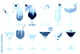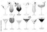 Variety of cocktails on glasses isolated on white, set