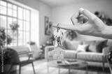 Moving house concept. The key into the door in room