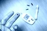 hand of people check diabetes and high blood glucose monitor with digital pressure gauge. Healthcare and Medical concept