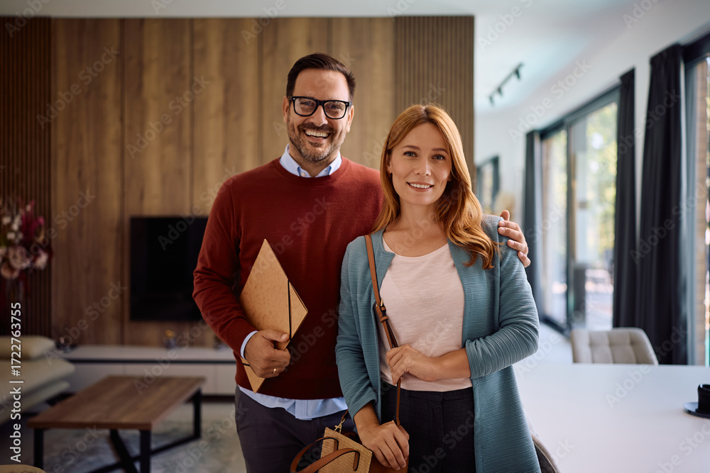 Portrait of happy new homeowners looking at camera.