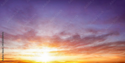 Sunset sky background. Panoramic view of sunset sky.