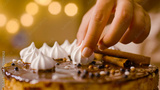 Close-up: Hand Decorating Decadent Chocolate Meringue Cake