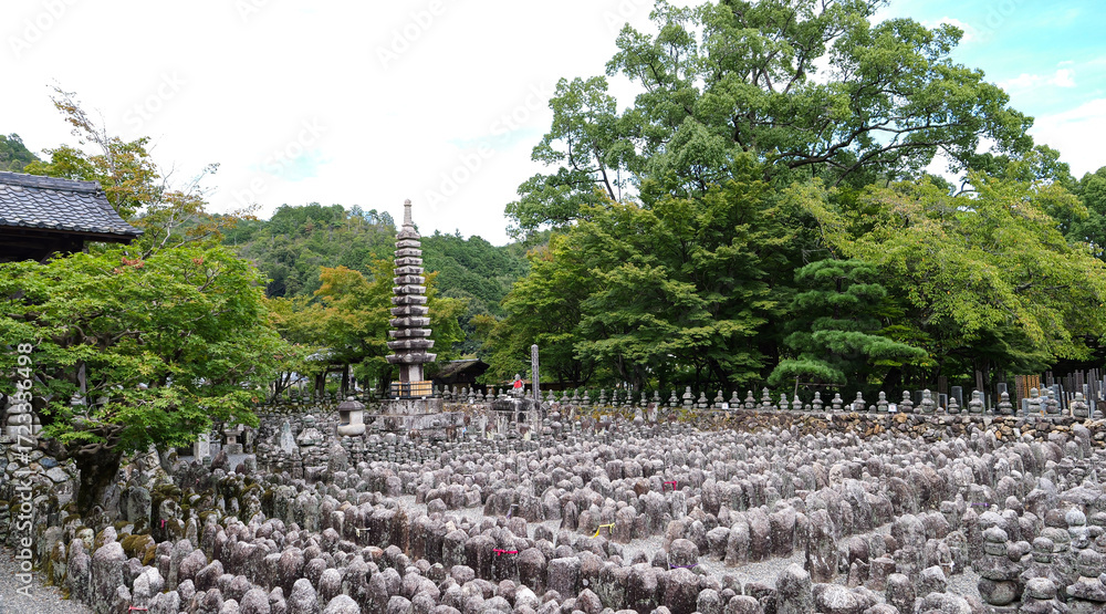 Stones on a traditional japanese cemetery, bamboo forest of Kyoto, Japan