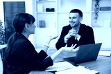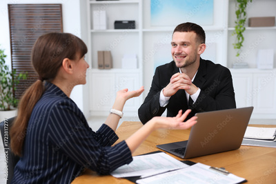 Consultant working with client at table in office. Business meeting