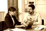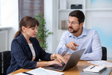 Consultant working with client at table in office. Business meeting