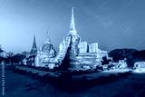 Asian religious architecture, Ancient pagoda at Wat Phra Sri Sanphet Temple under twilight sky, Ayutthaya Province, Thailand