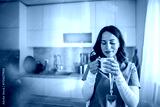 Healthcare worker enjoying coffee break in kitchen