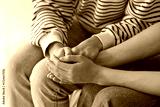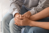 Young woman supporting her friend with suicidal thoughts in bedroom, closeup