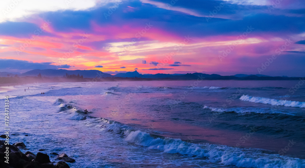 Sunset over Main Beach in Byron Bay, Australia
