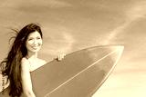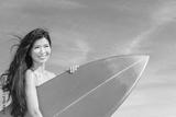 Beautiful Bikini Woman Girl Surfer & Surfboard Beach