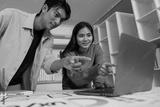 Engaged Designers Analyzing UX UI Designs on Laptop