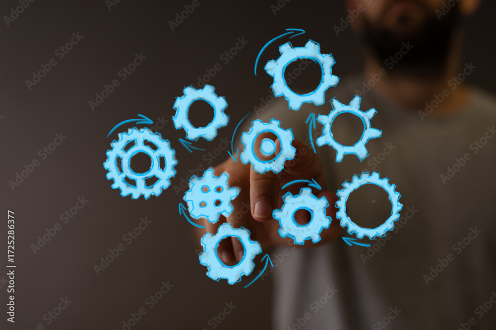 Abstract image of gears symbolizing teamwork, collaboration, synergy, workflow, and process optimization. Ideal for business concepts.