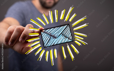 Modern communication, digital mail, online message, email marketing, fast connection, sending message, internet technology, online corresp